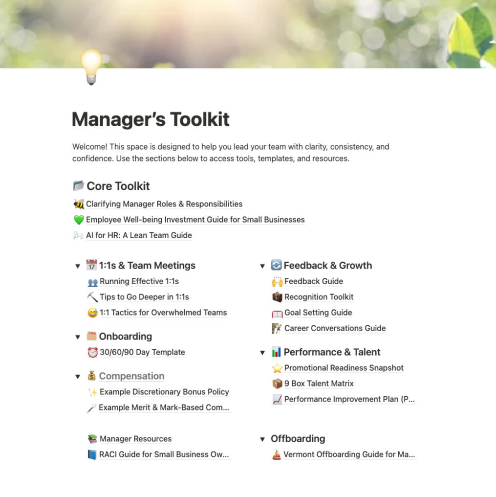 That’s exactly who this is for. The toolkit is designed to work without a full HR team—just real people doing their best to lead well.